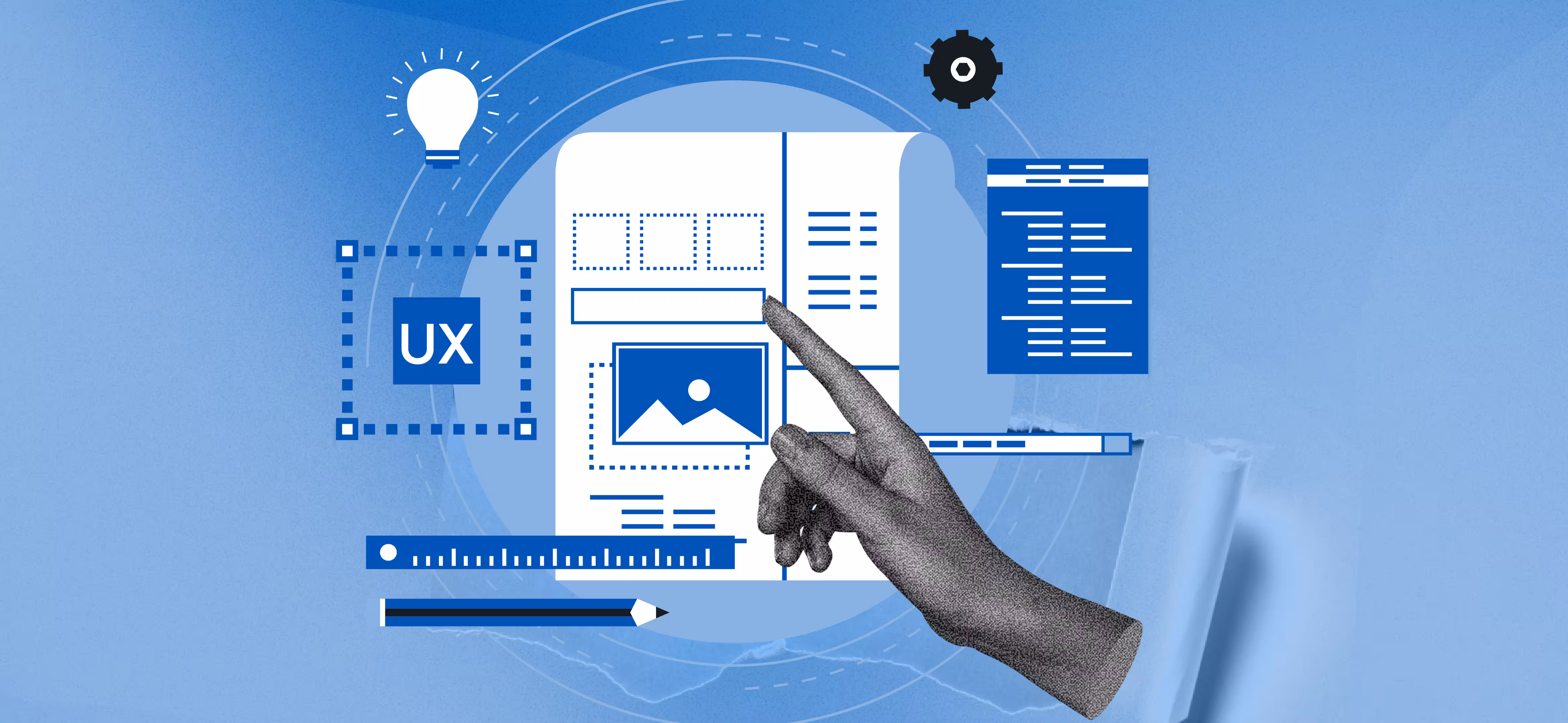 In UX design, wireframing involves a drawing or a diagram of a page in a web site, software or application that considers: